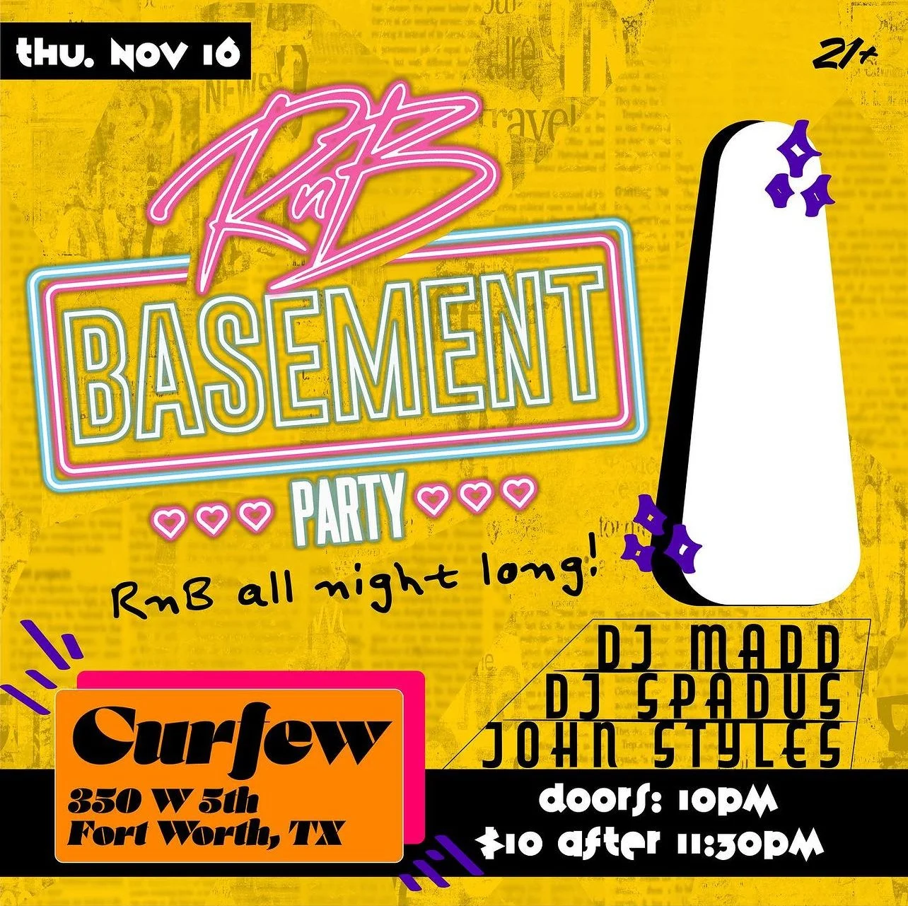 Enjoy heavily-curated DJ RNB sets from Fort Worth legends, John Styles and DJ Madd, alongside our resident DJ Spadus! Sing and dance the night away to your favorite RNB songs from the '70s til now!