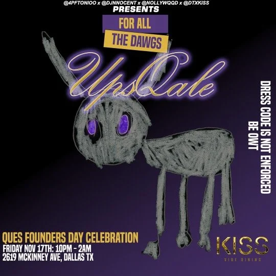 Join the Ques for ONE NIGHT ONLY at KISS Dallas as they celebrate Founders Day! All Are Welcome. Ladies Dress Nice!